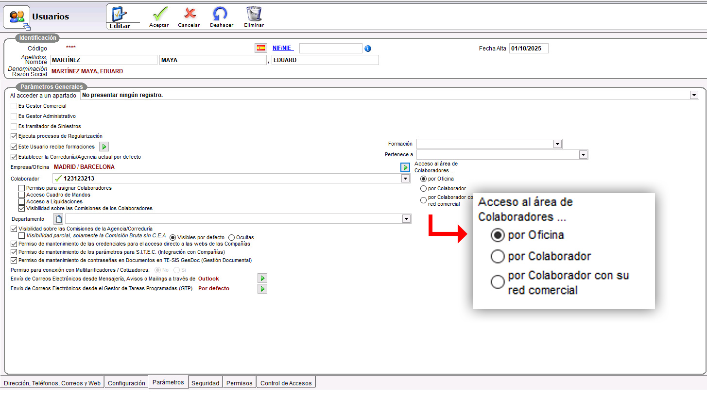 Se permite así definir si podrán visualizar desde Tesis Broker Manager Web únicamente su propia cartera, la cartera completa de la oficina a la que están asignados o la de los colaboradores que dependen de él.